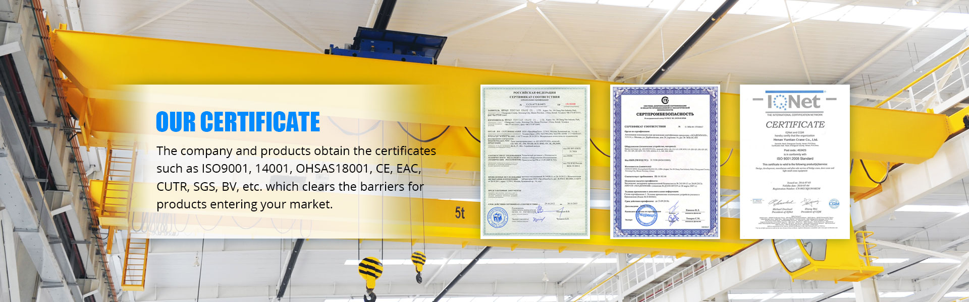 আমরা আপনাকে 0.25tons থেকে 900tons থেকে শিল্প cranes সব ধরণের সরবরাহ করতে পারে, পাস জিবি / টি 19001-2000 আইডি 9001: 2000, জিবি / টি 24001-2004 আইডি 14001: 2004, জিবি / টি 28001-2001, ওহিসাস 18001: 1999, সিই, গোস্ট, এসজিএস, টিইউভি, বিভি এবং আরও অনেক কিছু।
